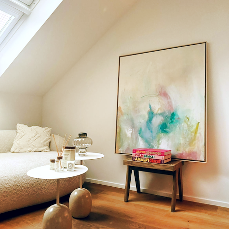 Anschließend übersetze ich die Ergebnisse aus Ihrem Coaching in eine abstrakte Malerei. So entsteht ein einzigartiges Kunstwerk, das Ihre persönliche Entwicklung, konkrete Phase oder Entscheidung sichtbar macht. Sie erhalten mehr als ein abstraktes Bild: Eine bleibende Erinnerung an Klarheit, Richtung und innere Ausrichtung – künstlerisch interpretiert und individuell für Sie geschaffen.