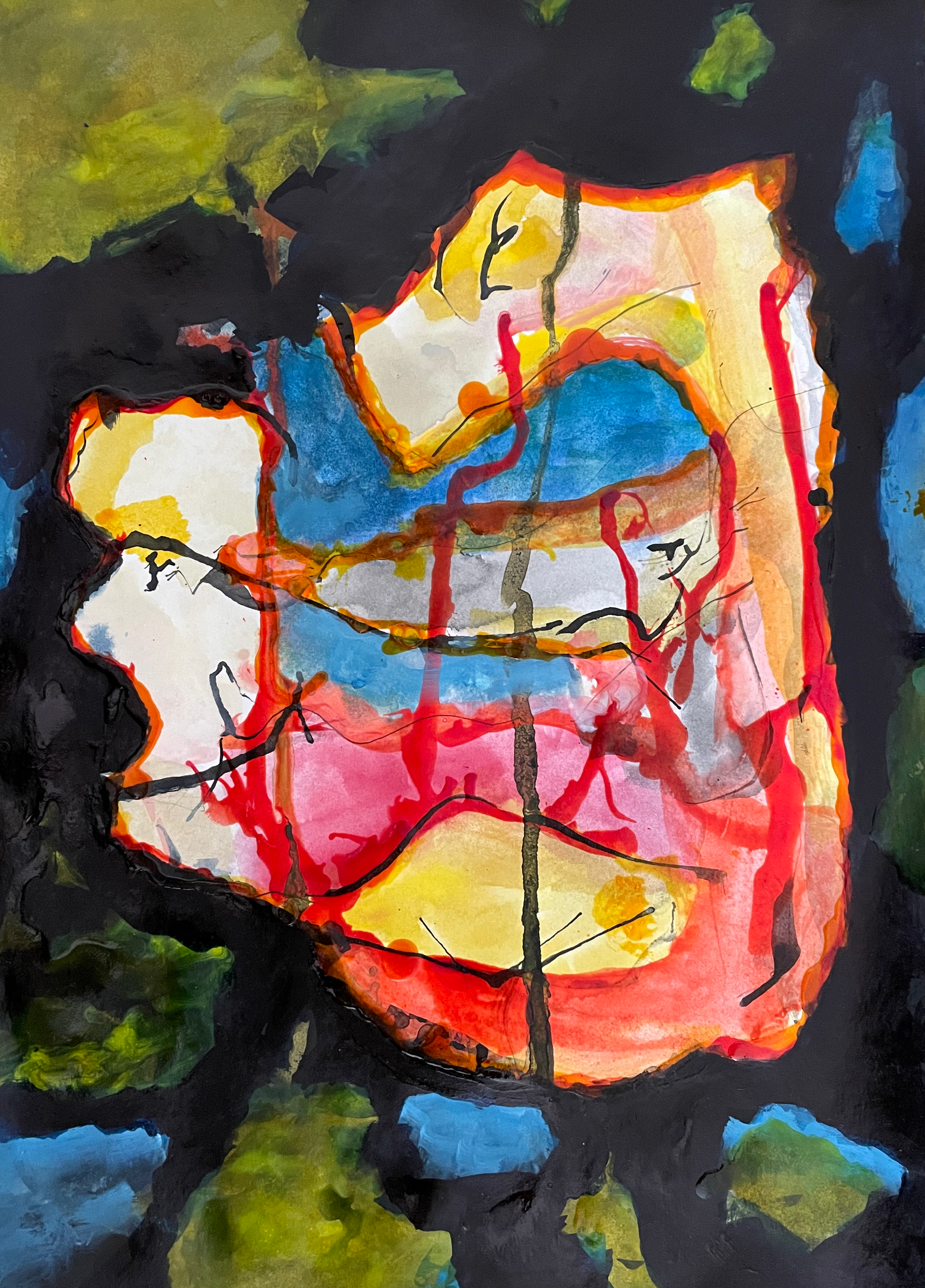 Tusche, Aquarell, Öl auf Papier, 30 x 20 cm, 2022, verkauft